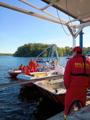 Mit sieben Booten und zwei SUPs haben unsere Kamerd:innen der Oberhavel und aus Treptow-Köpenick die Schwimmenden beim TegelSwim begleitet und sechs erschöpfte aus dem Wasser geholt.